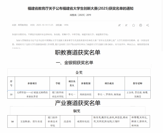 我校师生团队在福建省大学生创新创业大赛中斩获一金一铜